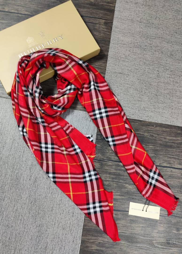 Burberry_Red_Classic_House_Check_Monogram_Logo_Luxury_Cotton_Pashmina_Scarf_With_Polythene